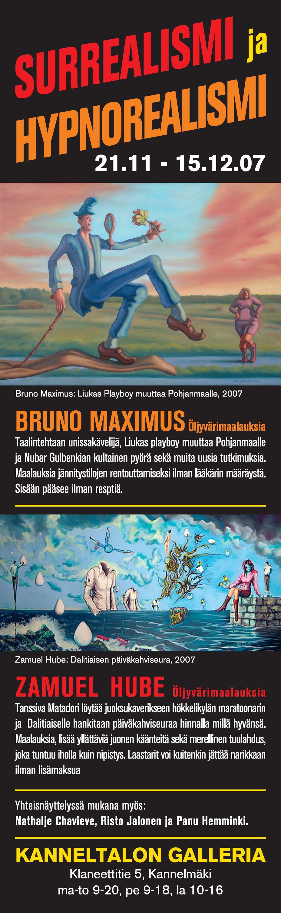 Previous ImageNext Image Exhibition in Kanneltalo gallery in Helsinki. Bruno Maximus, Zamuel Hube, Panu Hemminki, Nathalie Chavieve and Risto Jalonen Jaa:TweetLike Loading...