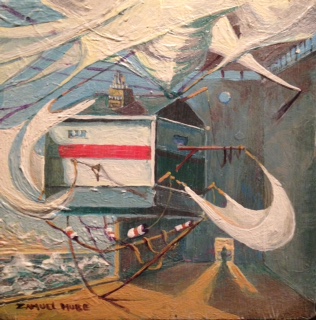 Viimeiset hetket ennen lähtöä 2018, akryyliväri levylle.