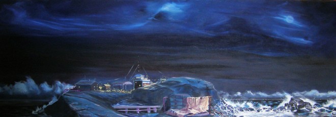 Previous ImageNext Image Yö Tuulitehtaalla 2018. akryyliväri kankaalle. koko 50 cm x 140 cm. Jaa:TweetLike Loading...